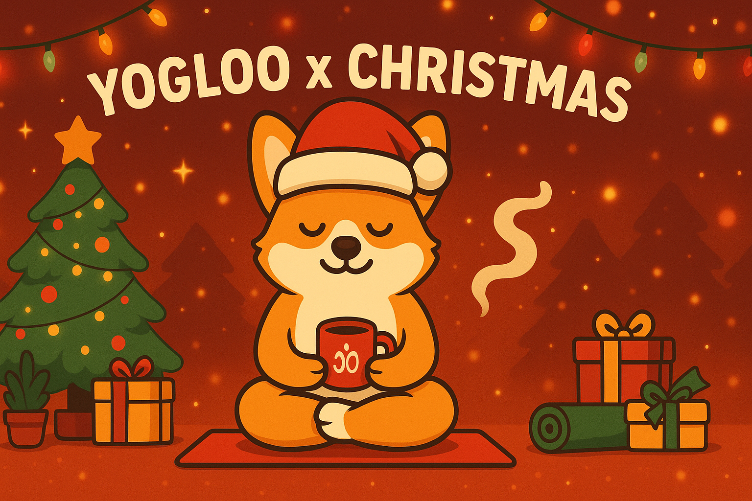 Celebrate a mindful Christmas withYogloothe corgi finding inner calm in lotus pose, Santa hat on, mug in paw. Cozy, funny, and heart-warming — perfect for yogis, dog lovers, and anyone who believes calm is the new merry.